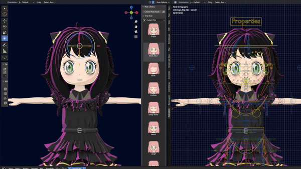 This is a variation of the same Anya Forger rig with a different skin like Wednesday Addams and some updates to the rig for the skirt, hair, and facial textures.